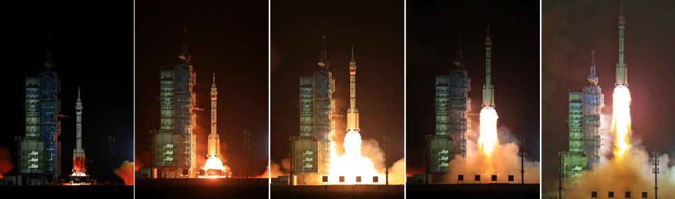 4月25日20时59分,搭载神舟十八号载人飞船的长征二号F遥十八运载火箭在酒泉卫星发射中心点火发射,约10分钟后,神舟十八号载人飞船与火箭成功分离,进入预定轨道。目前,航天员乘组状态良好,发射取得圆满成功(拼版照片)。