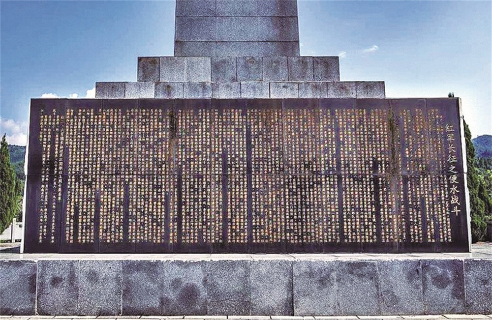 上坪红军烈士陵园内的红军烈士纪念碑基座北面,刻着“红军长征之便水战斗”介绍。资料照片