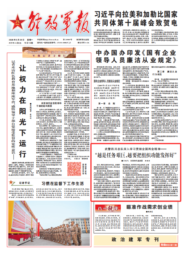 武警四川总队深入学习贯彻全国两会精神——