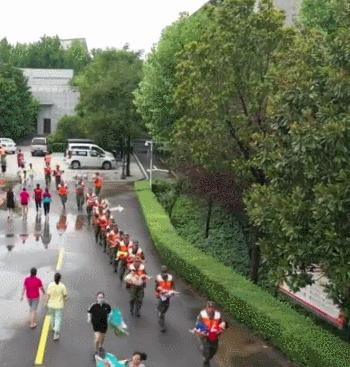 7月21日,火箭军某部将郑州市儿童福利院500余名残疾儿童紧急转移至安全地域。摄影 段得成