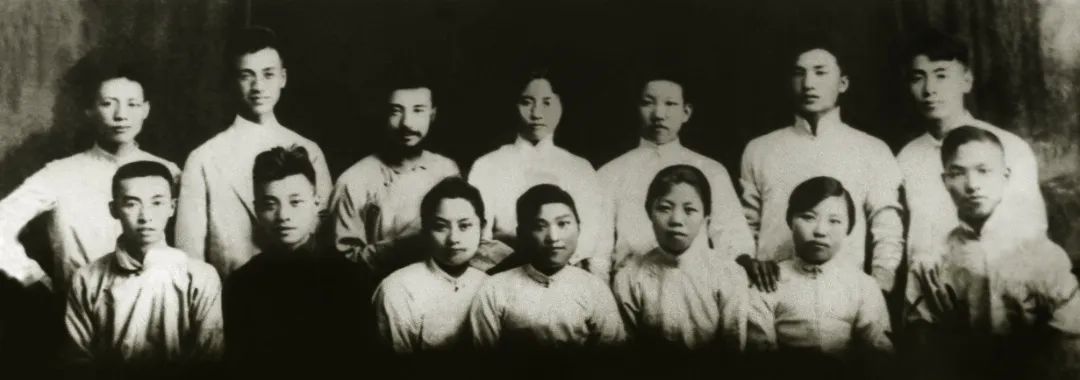 1919年9月,周恩来与天津学生进步团体觉悟社部分成员合影(后排右起:周恩来、胡维宪、郭隆真、李锡锦、马骏、潘述庵、谌小岑;前排右起:李振瀛、刘清扬、邓颖超、周之廉、郑季清、薛撼岳、谌志笃)