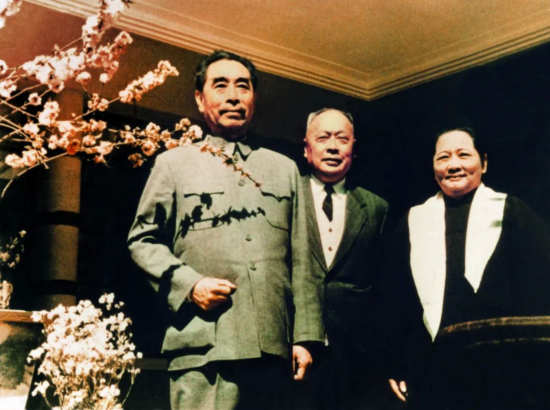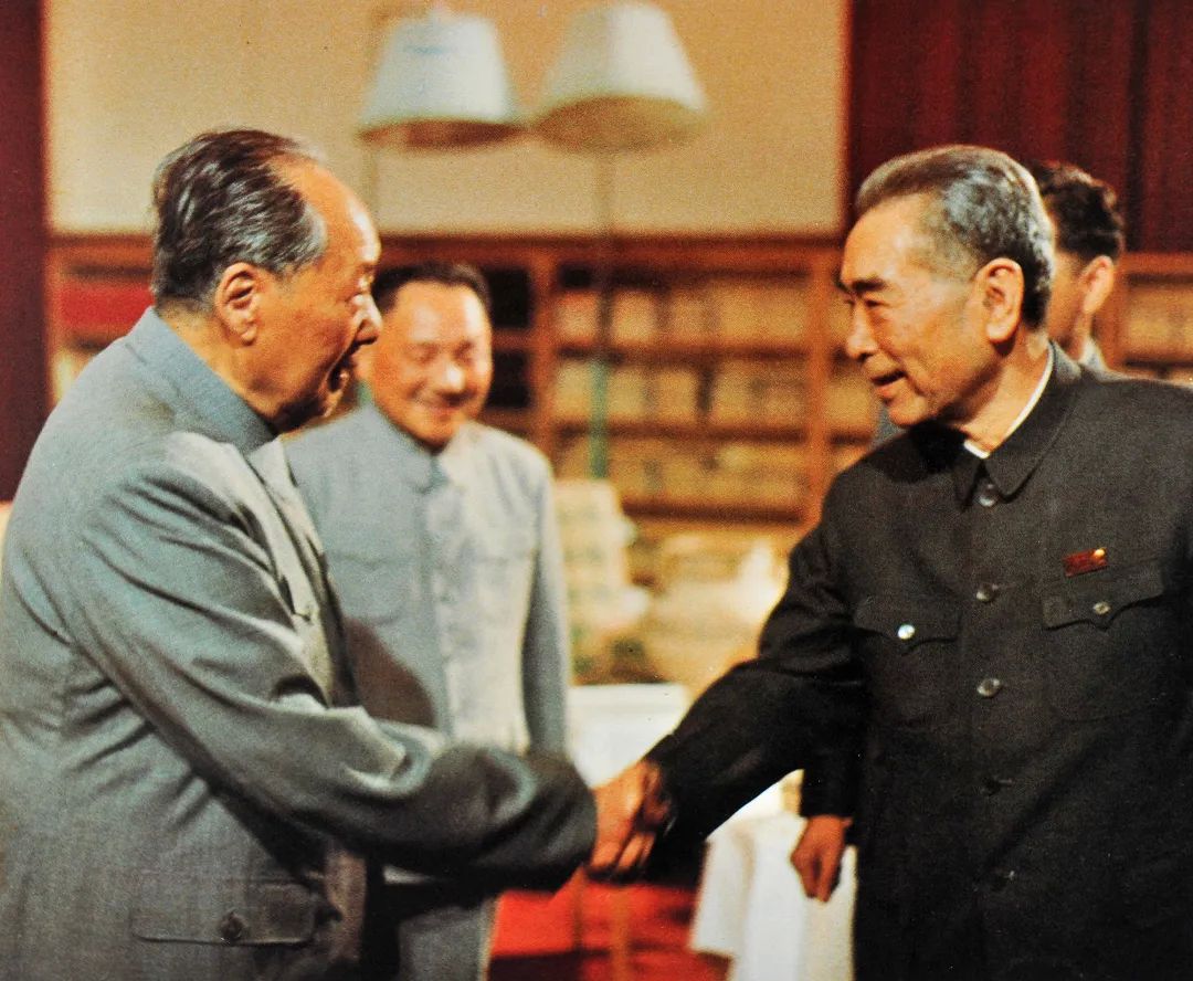1974年,毛泽东、周恩来、邓小平在中南海毛泽东书房