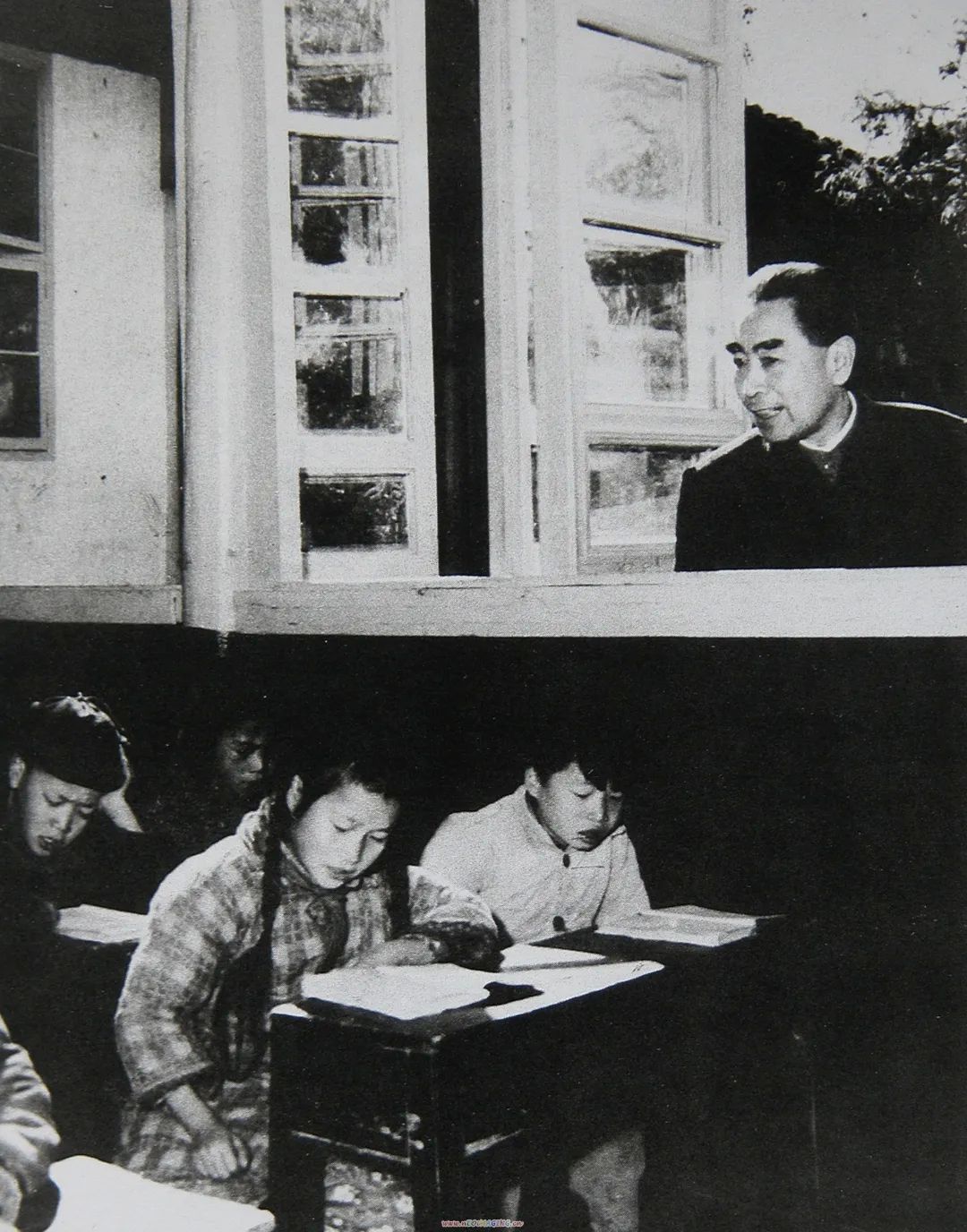 1957年4月,周恩来在杭州梅家坞小学观看学生上课