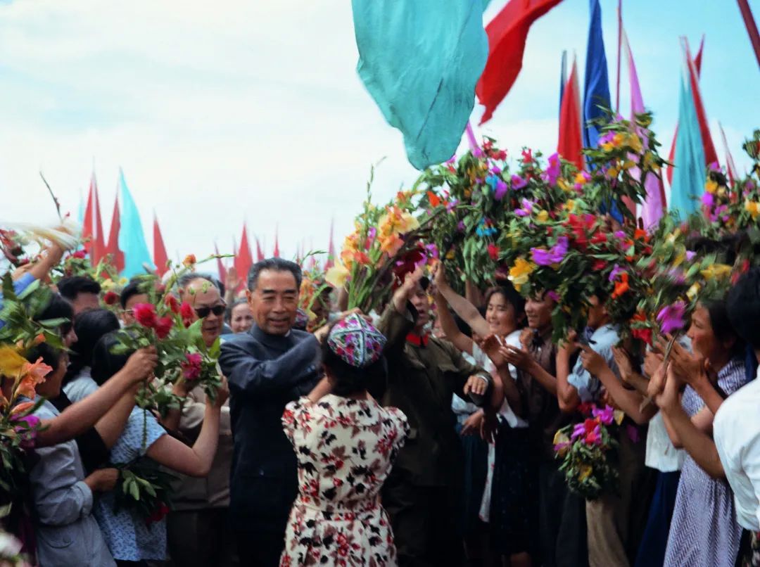 周恩来在新疆乌鲁木齐和各族青年在一起