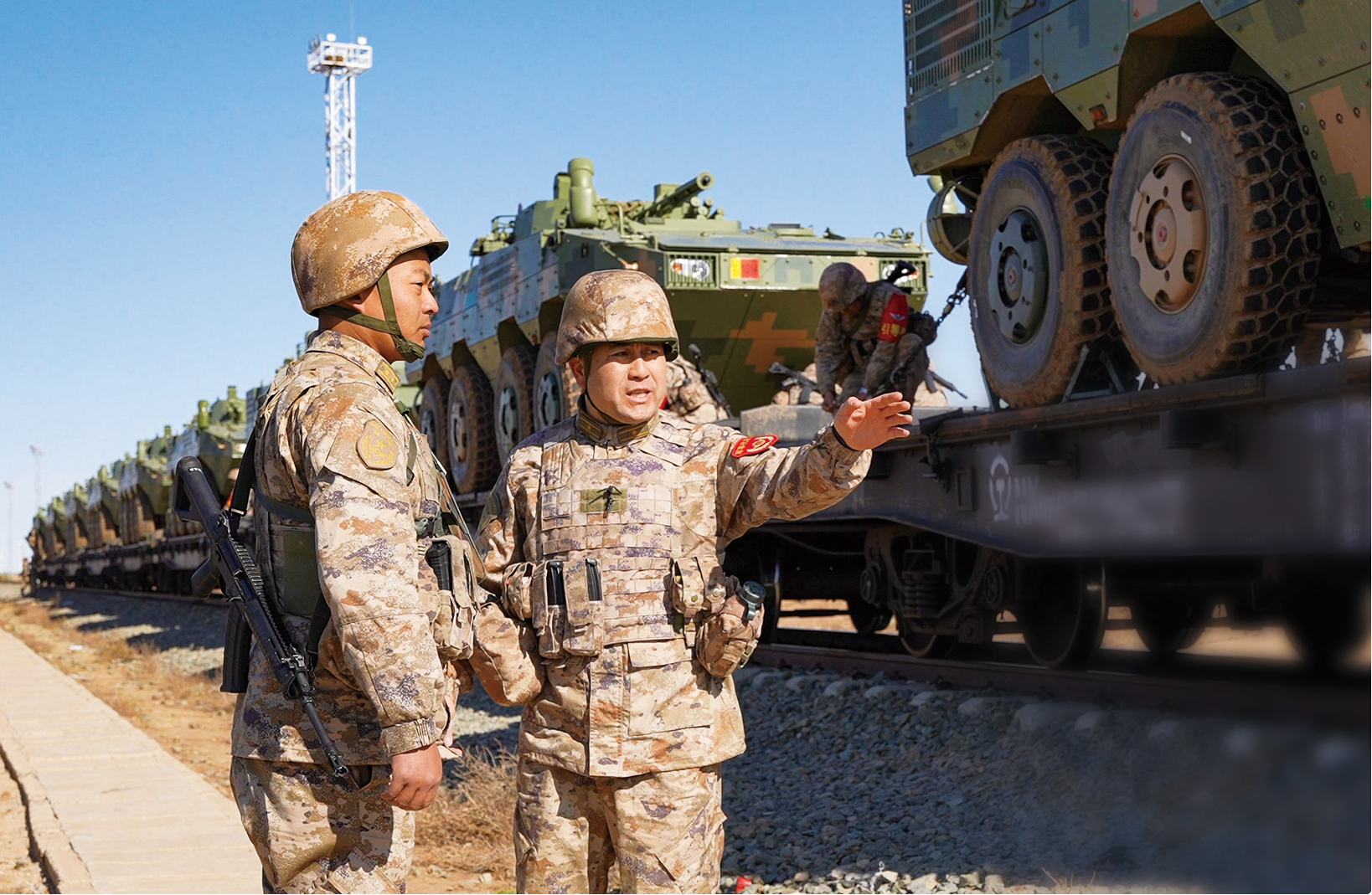军列装载完毕后,任务部队、军代表、铁路部门三方进行联合检查。张刚 摄