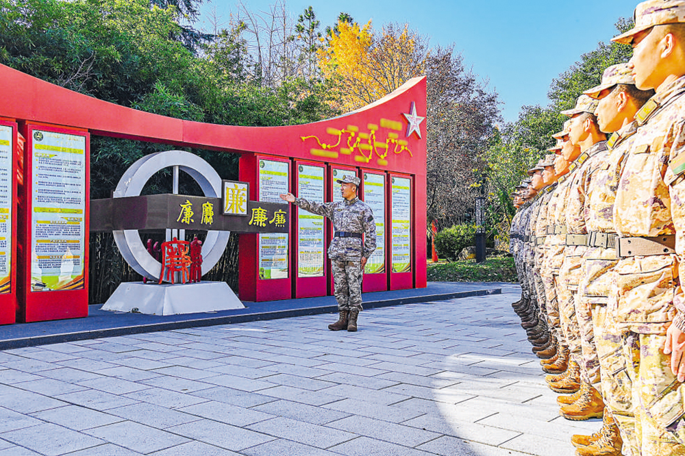 陆军某旅官兵在廉政广场开展教育活动。胡庆峰 摄