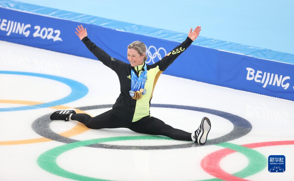 图为八届奥运老将德国选手克劳迪娅·佩希施泰因在北京2022年冬奥会速度滑冰全部比赛结束后留影(2022年2月19日摄)。新华社记者 丁旭 摄