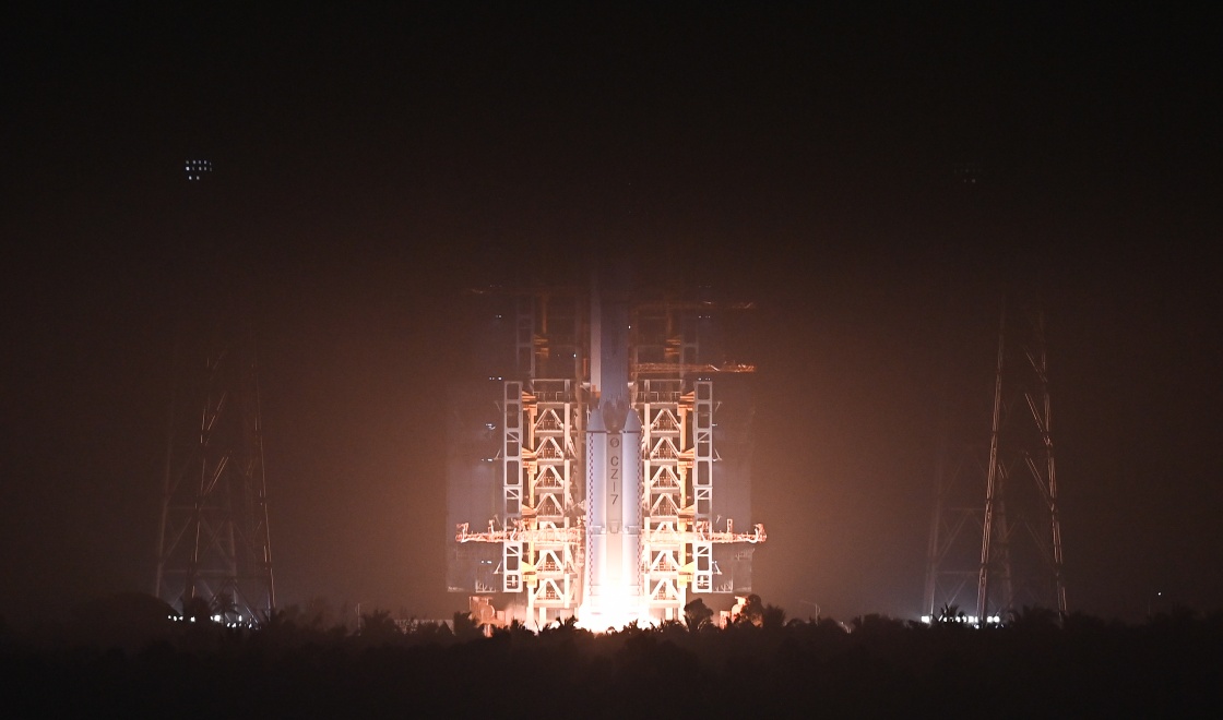 5月10日凌晨1时56分,长征七号运载火箭托举着天舟四号货运飞船腾空而起,约10分钟后,飞船与火箭成功分离,进入预定轨道,2时23分,飞船太阳能帆板顺利展开工作,发射取得圆满成功。新华社记者 郭程 摄