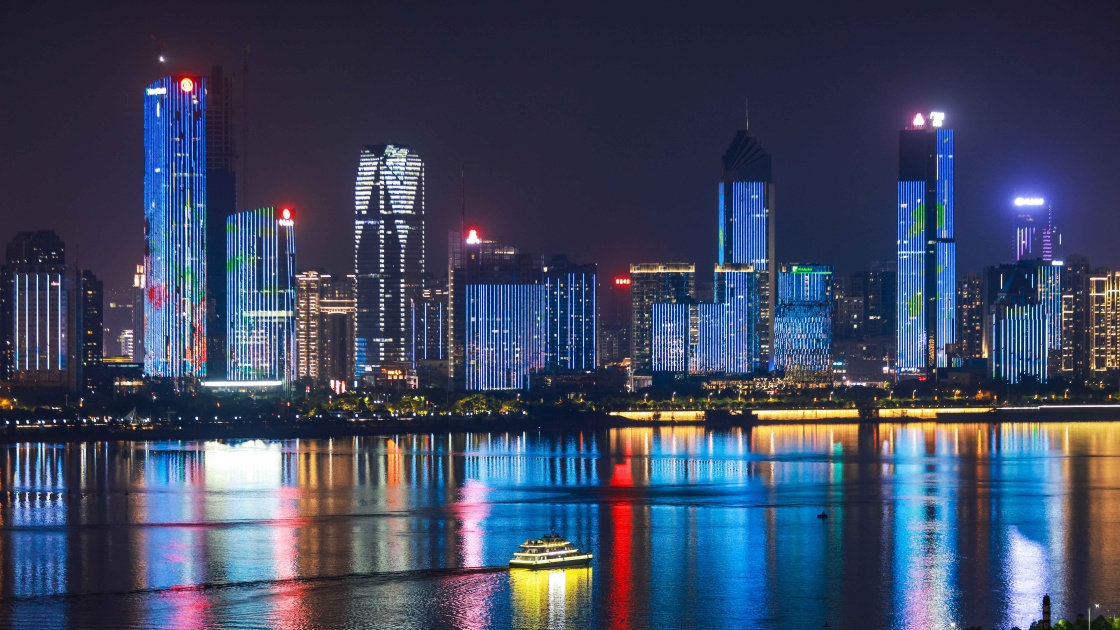 这是在江西省南昌市赣江畔拍摄的LED灯光秀(5月17日摄)。 新华社发(马悦 摄)