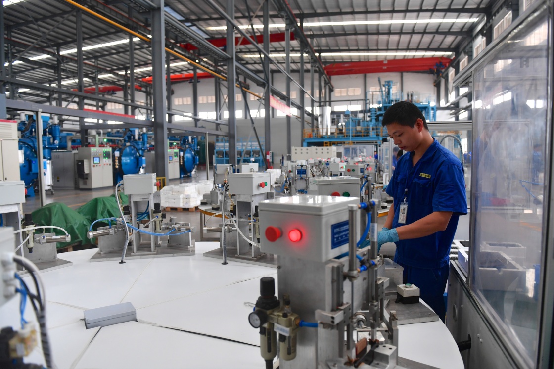 2019年5月20日,江西金力永磁科技股份有限公司的工人在车间内工作。 新华社记者 胡晨欢 摄