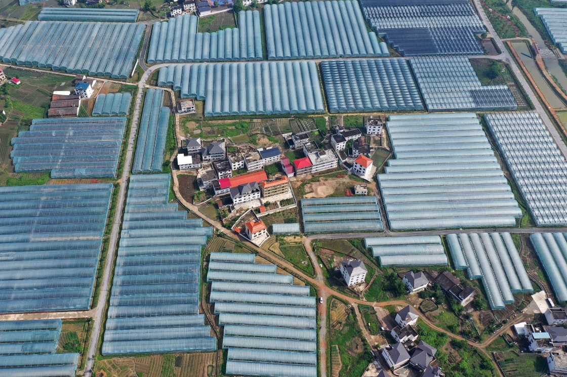 江西省赣州市于都县梓山镇潭头村的果蔬种植基地(2021年4月29日摄,无人机照片)。 新华社记者 万象 摄