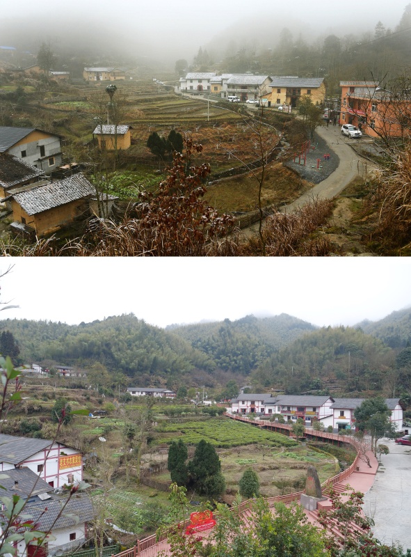 拼版照片:上图为2016年2月2日拍摄的江西省井冈山市神山村景色(新华社记者万象摄);下图为2022年2月15日拍摄的神山村景色(新华社记者郭杰文摄)。 新华社发