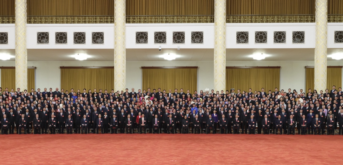 10月23日下午,中共中央总书记、国家主席、中央军委主席习近平等领导同志在北京人民大会堂亲切会见出席党的二十大代表、特邀代表和列席人员,并同大家合影留念。新华社记者 鞠鹏 摄