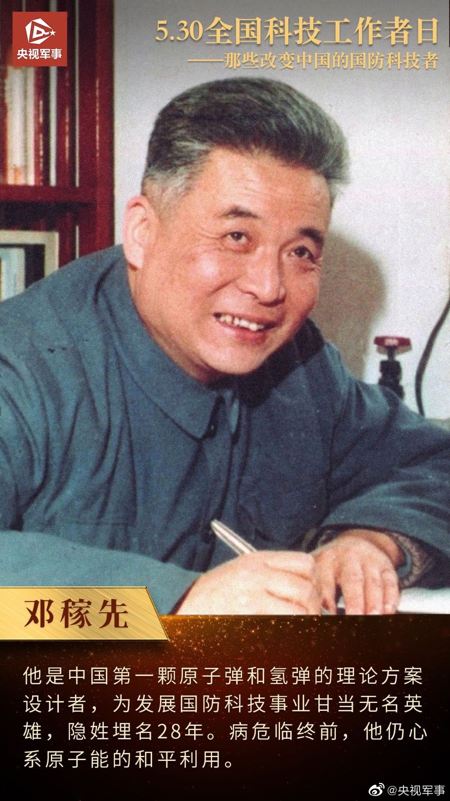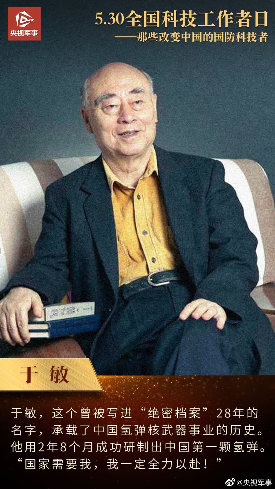 面对导弹、火箭事业发展,坚信外国人能搞的中国人也能搞的钱学森;病危临终前仍心系原子能和平利用的邓稼先;用2年8个月研制出我国第一颗氢弹的于敏……他们为发展国防科技事业呕心沥血,无愧为国之脊梁!今天,全国科技工作者日,向他们致敬!