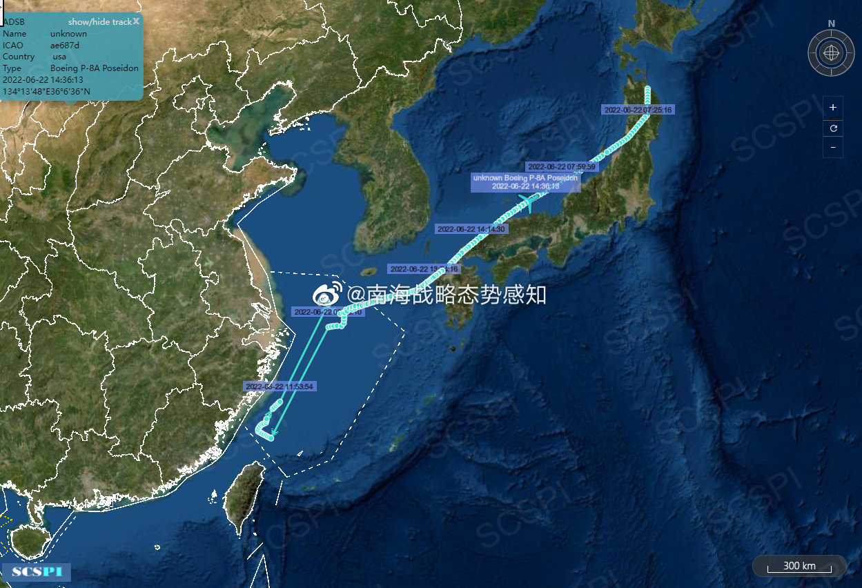 据南海战略态势感知智库官方微博消息,22日,美海军一架P-8A在东海进行异常抵近侦察,在长江口外海高强度活动,很可能意在中国海军福建舰。