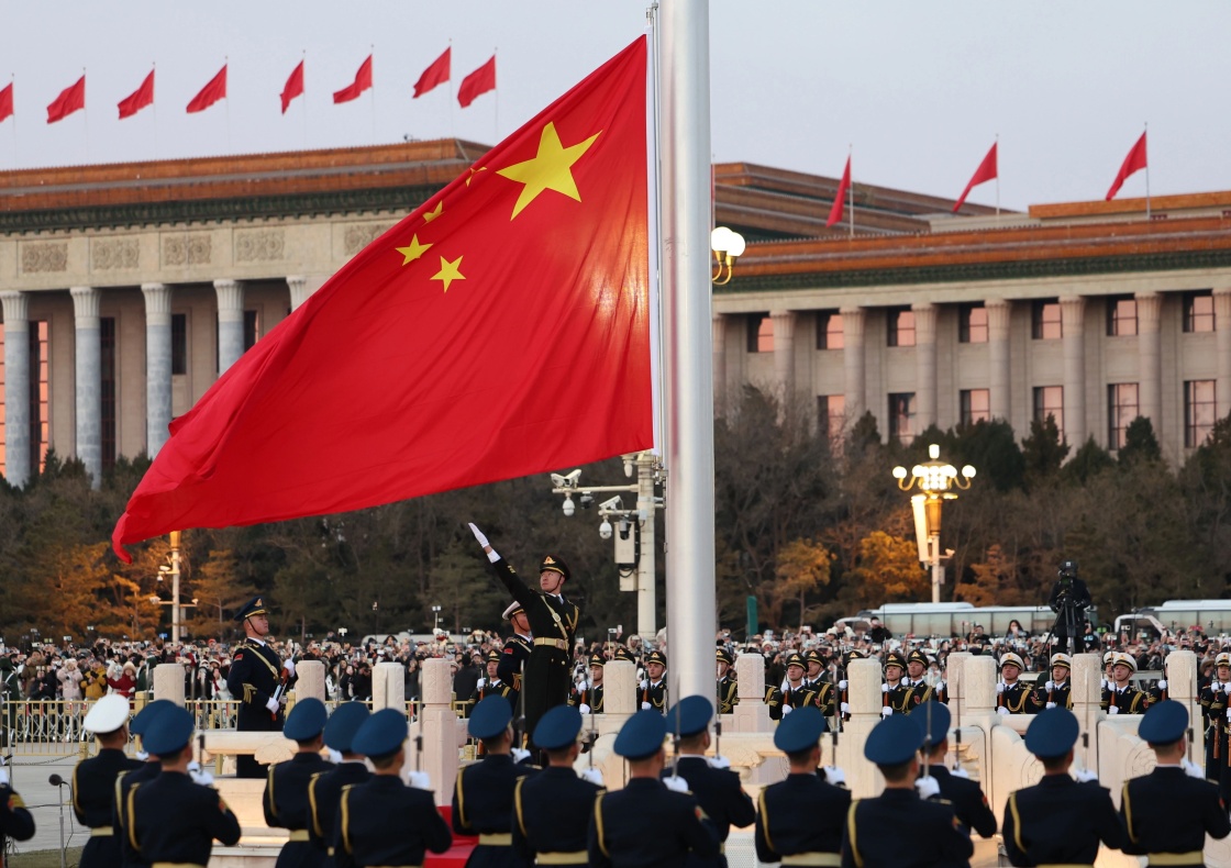 2025年1月1日清晨,北京天安门广场举行隆重的升国旗仪式。