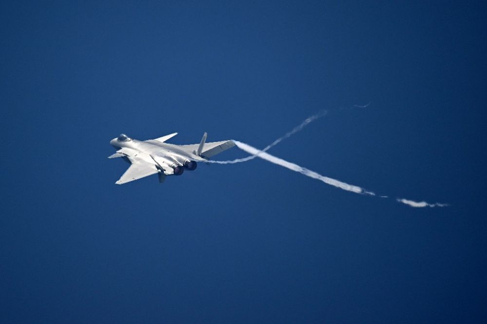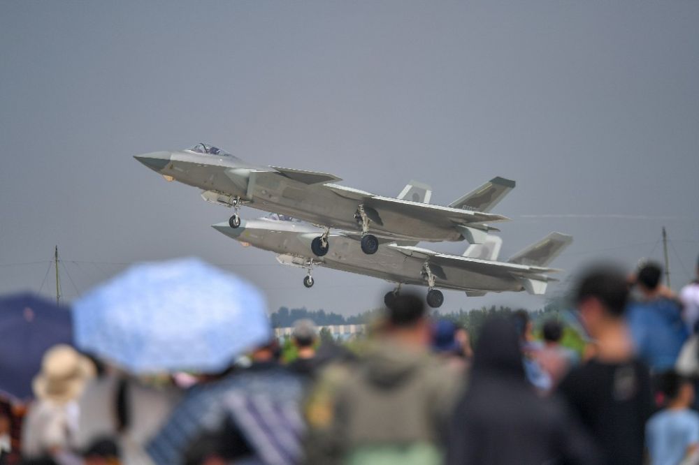 ↑7月26日,在2023年空军航空开放活动·长春航空展上,歼-20进行飞行展示。新华社发(谭巳成 摄)