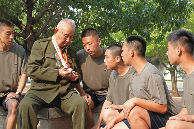 利用外部师资力量搞教育是他们采取的又一实际举措。驻地干休所老首长鲁振武参加过抗日战争,胸前挂满了奖章,一枚奖章就是一段不凡的经历。老首长以自身的从军经历,讲述红色故事,教育“准新兵”勿忘国耻,继承优良革命传统,从军后刻苦训练,熟练掌握手中武器,保家卫国,早日建功军营。课后,鲁振武老首长成了“准新兵”们追捧的偶像,争相与其合影留念,表示自己到部队后争取多立功受奖。接兵干部刘源,重点围绕“部队是个什么样”、“到了部队怎么干”、“新时代青年当兵为了啥”、“如何在部队锤炼成钢”等问题,与他们进行了深入的交流、讨论。课堂气氛热烈,“准新兵”们争相举手提问问题,台上答者到边见底,台下听者入心入脑,革命的火种和理想深深地扎根在他们心中。