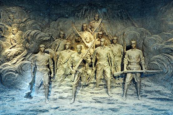 资料图:山东乳山马石山十勇士纪念馆里的十勇士雕像。新华社发