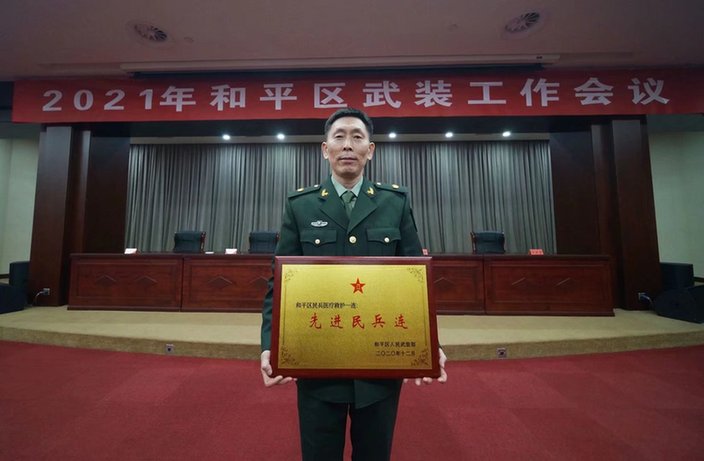 在年初的天津奥密克戎大筛中,杨兆国在完成医院本职工作的同时,每天下班后,还主动参与社区志愿服务工作,帮助社区组织疫情大筛查,在患病、两次挂急诊的情况下,他还坚持加班加点,搜集了解退役军人、民兵预备人员一线抗疫情况,报道广大退役军人抗疫先进事迹。参与抗疫的官兵看到杨兆国就感觉有了主心骨,用大家的话说,“杨部长是我们的坚强后盾!”