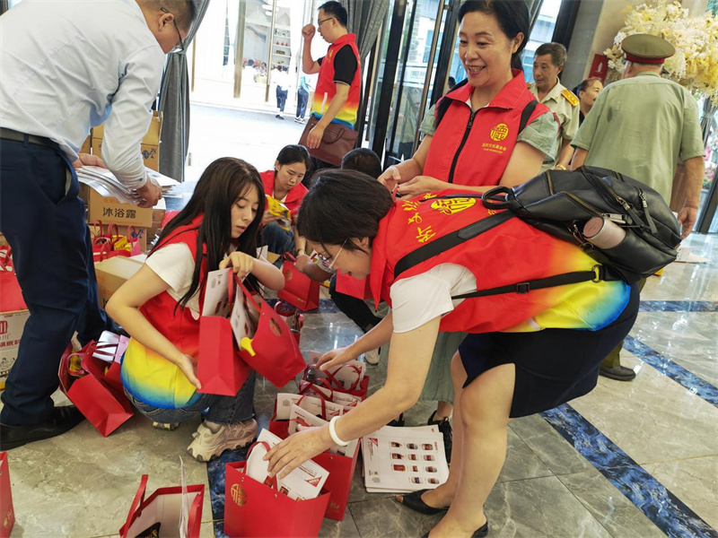 文化教育志愿者服务站、玉缘志愿者服务站、普法教育志愿者服务站志愿者在分装慰问物资