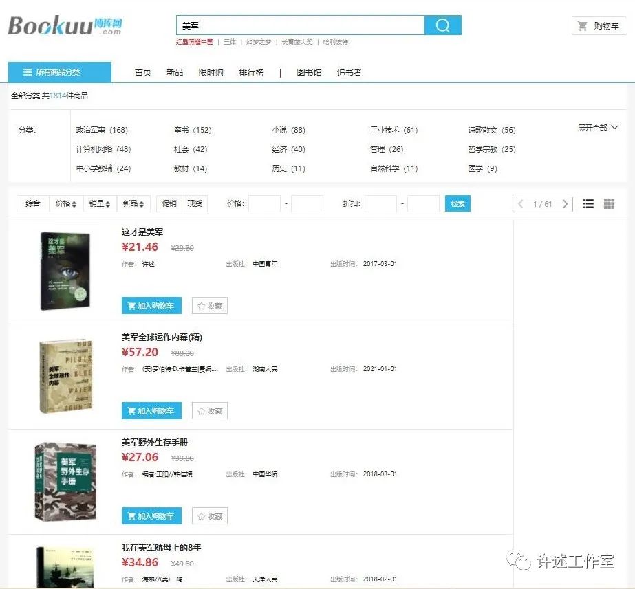 世界读书日 如今,在手机等平台看电子书很方便很普及了,但还是有相当一部分人喜欢纸质书,那种质感那种书香那种感觉,是手机等平台难以替代的。 未来中美如果发生军事冲突,中国军队首先要面对印太战区的美军,这个战区的美军在看什么书呢?来看看印太战区官网最新一期推荐的阅读清单—— 上面的书单重点有几个特点: 第一,推荐书单一共21本,综合书名和内容看,美军的重点主题是两个关键词——印度、中国,其中印度主题的3本,中国主题的3本——《对抗霸权》(第4本,讲美国如何遏制中国的发展);《中国的欧亚世纪》(第15本,对中国“一带一路”的观察与评估)、《太平洋上的红星》(第21本,讲中国海军以及美国如何应对中国海军的崛起)。 《太平洋上的红星》 第二,书单前三本依次是:《我们的时代已经到来:印度如何在世界上占据一席之地》、《被遗忘的战争:英国在亚洲殖民地的终结》、《印度:新兴力量》。前三本书,“印度主题”占了两本(还有一本“印度主题”的书,书单第13——《黑暗之所:发现印度》),看来印太战区官方看好印度,想扶植和利用印度作为代理人对抗中国,同时还不忘吸取历史教训,希望自己不要重蹈英国的后尘,最后被赶出亚洲。 《我们的时代已经到来:印度如何在世界上占据一席之地》 第三,覆盖面广,印太战区主要国家都涉及到了,包括朝鲜(1本)、日本(2本)、印度尼西亚等(1本)。 总之,从美国印太战区司令部这份“推荐阅读书单”来看,“对手”味道很浓,“盟友”意识很强。 话说,在国内买书去什么网站溜达合适呢? 下面是2022年“网上书店十大品牌”——